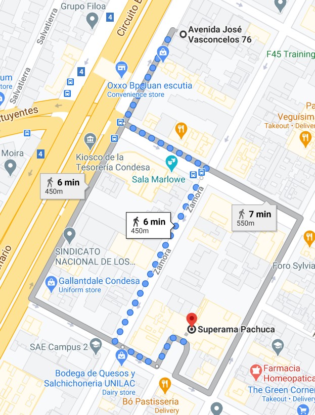 The closest supermarket is Superama Pachuca, just two blocks away. They also have pharmacy and ATMs. It is open everyday from 7 a.m. to 11 p.m.